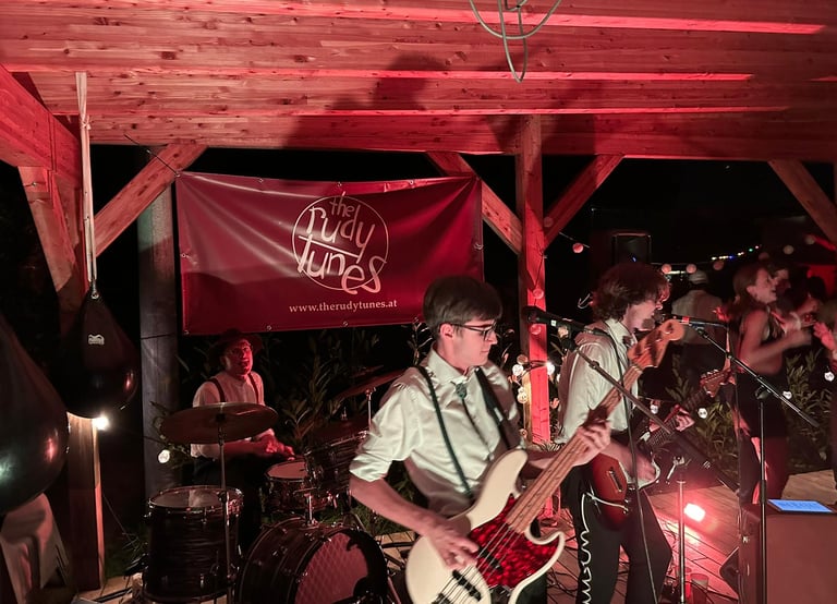 The Rudy Tunes gründete sich im Jahr 2022 in Wien als 60s-Coverband. Wir bieten Ihnen feinste Unterhaltung auf Ihrem Event, von wildem Rock'n'Roll bis zu herzzerreißenden Balladen aus dem musikalischen Jahrzehnt der Extraklasse. Schwingen Sie das Tanzbein zu Soul- und RnB-Klassikern und lassen Sie sich von unserer Performance mitreißen, gerne gleich bei einem unserer kommenden Konzerte. Unser Repertoire stimmt sich auf Ihre Bedürfnisse ab und bringt den Sound der 60er-Jahre auf Ihre Hochzeit, Firmenfeier oder Ihren Geburtstag. Genießen Sie einen besonderen Abend in Begleitung der Rudy Tunes.